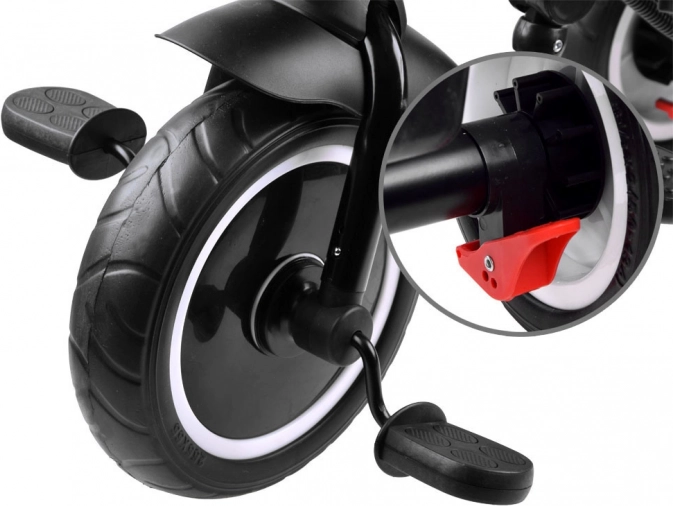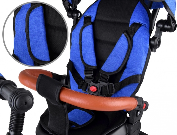 A magasságban állítható szülői tolókar össze van kötve a kormánnyal, így a tricikli felett teljes irányítás marad, még szűk utcácskákban is.