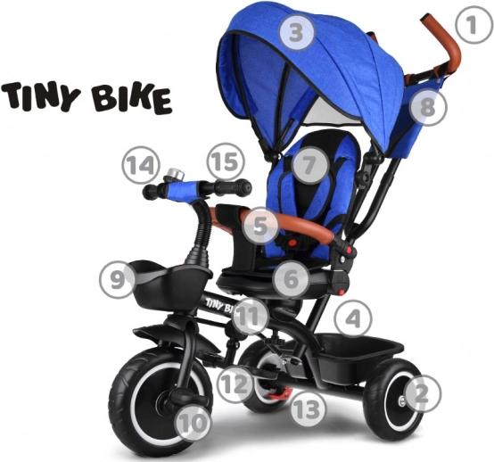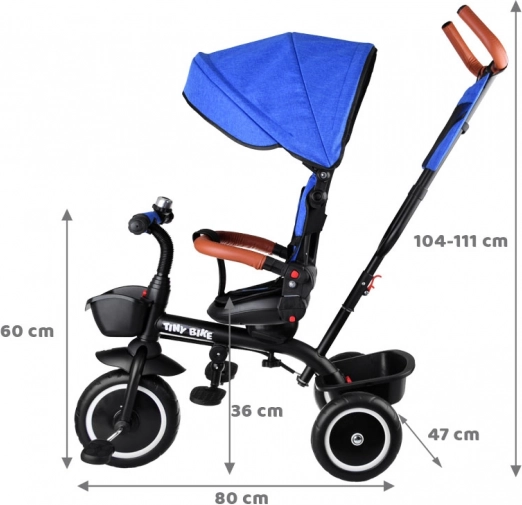 A praktikus 3 az 1-ben TINY BIKE gyermek tricikli a gyermekkel együtt nő 6 hónapostól 5 éves korig. Egyesíti a babakocsi, toló tricikli és önálló tricikli funkciókat egyben. A forgatható ülés, az ötpontos biztonsági öv, az összecsukható napellenző és a szülői tolókar finom irányítással maximális biztonságot, kényelmet és sokoldalúságot nyújt a mindennapi sétákhoz.