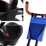 A szülők értékelni fogják a magasságban állítható tolókart közvetlen kormánykapcsolattal, a két hátsó féket és a praktikus tárolókat: első kosár, nagy hátsó kosár és táska az apróságoknak. Az összecsukható lábtartók a kisebbeknek és a pedálok az első keréken a nagyobbaknak biztosítják, hogy a tricikli a növekedés minden szakaszához tökéletesen illeszkedjen.