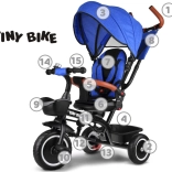 A praktikus 3 az 1-ben TINY BIKE gyermek tricikli a gyermekkel együtt nő 6 hónapostól 5 éves korig. Egyesíti a babakocsi, toló tricikli és önálló tricikli funkciókat egyben. A forgatható ülés, az ötpontos biztonsági öv, az összecsukható napellenző és a szülői tolókar finom irányítással maximális biztonságot, kényelmet és sokoldalúságot nyújt a mindennapi sétákhoz.