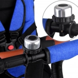 - forgatható ülés, ötpontos öv, védőkorlát, összecsukható hálós napellenző, lábtartók, pedálok, csengő, 2 kosár, szülői táska