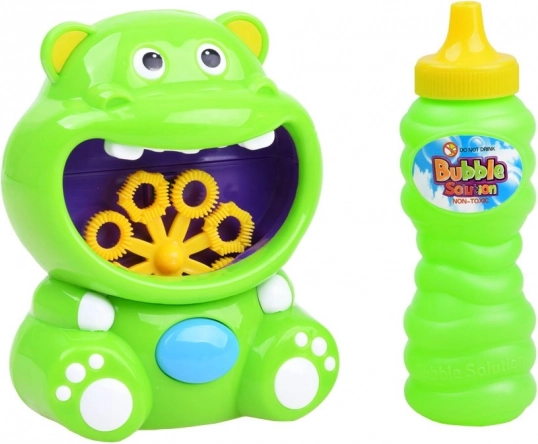 - Kész csomag: víziló buborékgép + egy üveg buborékoldat.