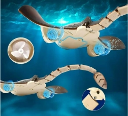Ez a távirányítós úszó rája hűen utánozza a valódi ráják mozgását. A farok és a melluszonyok fejlett mechanikája élethű úszást és könnyű, minden irányú irányíthatóságot biztosít. Ideális nyári vízi szórakozáshoz vagy otthoni kísérletezéshez a kádban.