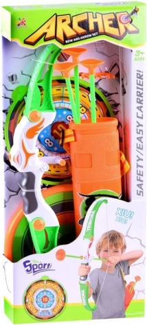 Szórakoztató és biztonságos íjászkészlet gyerekeknek, amely tartalmaz egy íjat, felakasztható céltáblát, 3 darab tapadókorongos nyilat és egy tegezt. A puha tapadókorongoknak köszönhetően a játék beltéren is biztonságos, a színes kivitel és a könnyű használat pedig fejleszti a pontosságot, a koordinációt és a türelmet.
