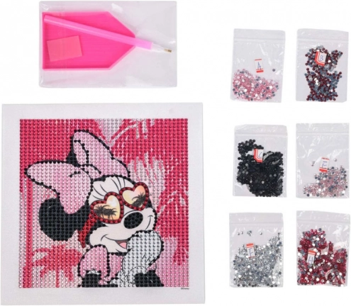 Könnyen és szórakoztatóan készíthet csillogó képet Minnie Egérről a mellékelt kristálykövek és eszközök segítségével.