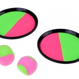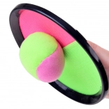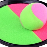 A neon zöld és rózsaszín, osztott elkapófelület a tépőzárral azonnal megtartja a labdát – ideális a pontosság és a reflexek gyakorlásához.