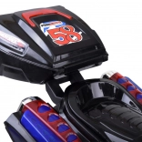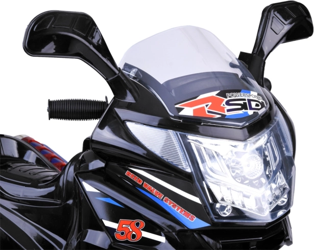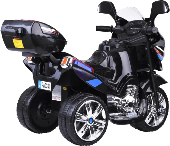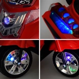 Stílusos, háromkerekű gyermek elektromos motor stabil menettel, elöl, oldalt és a kerekekben is található színes LED világítással, valamint egyszerű vezérléssel on/off gombbal. A csendes, gumicsíkos kerekeknek köszönhetően lakásba és teraszra is ideális, rendelkezik elektromos fékkel, vidám hanggombokkal és praktikus hátsó csomagtartó dobozzal apróságok számára.