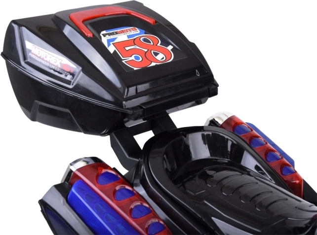 A hátul elhelyezett, zárható boxban elférnek a kedvenc játékok és a kis motoros nélkülözhetetlen holmijai.