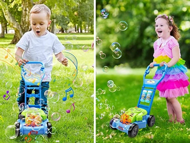 A használat egyszerű: töltsd a buborékoldatot a tartályba, és egyetlen piros gomb megnyomásával indítsd el a fűnyírót. A szórakozásról a valósághű motorhang és a vidám dallam gondoskodik, amelyek fokozzák az élményt a kertben, a játszótéren vagy a nyári séták során.