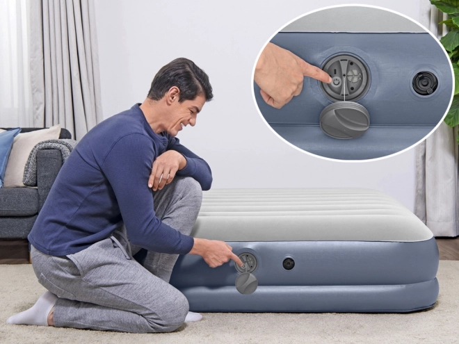 A kivehető akkumulátoros pumpa körülbelül 4 perc alatt felfújja a matracot, és egyetlen feltöltéssel akár két teljes felfújást is elvégez. A töltés egyszerűen USB-n keresztül történik.