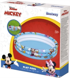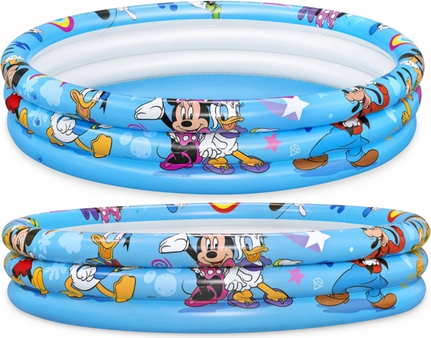 Könnyű és hordozható Bestway felfújható medence hivatalos MICKEY & FRIENDS grafikával, amelyet kerti vízi játékokra terveztek. A három különálló gyűrű tartja a formát és jobban bent tartja a levegőt, míg a puha, tesztelt vinil kényelmet és tartósságot biztosít a mindennapos használat során.