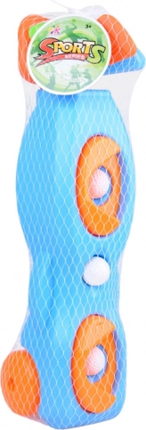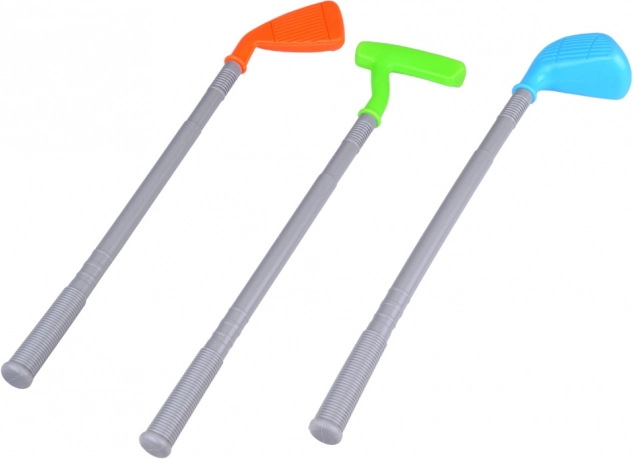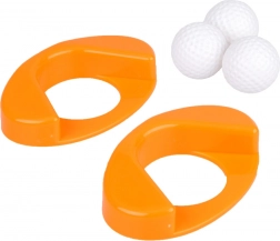 Három könnyű műanyag ütő, három labda és két lyuk talppal – minden, ami a minigolfhoz kell otthon vagy a szabadban.