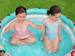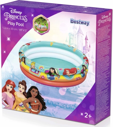 A bájos Bestway felfújható medence DISNEY PRINCESS motívummal minden kis hercegnőt elvarázsol. A kompakt 122 × 30 cm-es méret, a puha felfújható alj és a 3 különálló kamra kényelmet és stabilitást biztosít. Tartós PVC anyag és varázslatos nyomatok a kedvelt szereplőkkel, hogy minden délután nyári vizes mókává váljon a kertben vagy a teraszon.