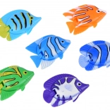 A csomagban hat könnyű, különböző színű halacska található, ideális a színek tanulásához és a megfigyelőképesség gyakorlásához.