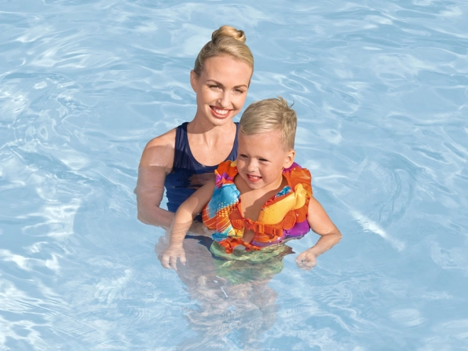 A színes BESTWAY gyermek felfújható mellény segít az úszás tanulásában 3–6 éves (19–30 kg) gyerekeknek. Két független légkamrával, állítható csatokkal és tartós TOUGHLITE anyaggal a nagyobb biztonságért. A élénk narancssárga szín kiváló láthatóságot biztosít a vízparton.