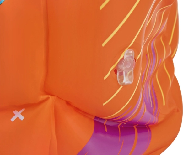 Az élénk narancssárga szín és a feltűnő minta megkönnyíti a gyermek felügyeletét játék és úszástanulás közben is.