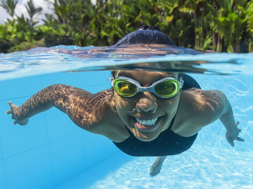 A tartós polikarbonát lencsék UV-szűrővel védik a szemet a naptól, és tiszta látást biztosítanak kültéri és beltéri úszásnál egyaránt.