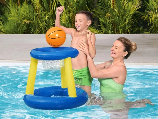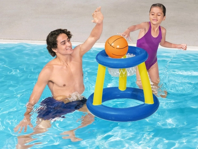 Kék-sárga felfújható kosárlabda szett a Bestway javaslata az aktív időtöltéshez, fürdés közben a medencében. Biztosan tetszeni fog azoknak a gyerekeknek, akik szeretnek mozogni. A vízben játszani egy forró nyári napon garantáltan szuper élmény, és rengeteg szórakozást nyújt. Csak fújd fel az összes elemet, és kezdődhet a móka! A víz felszínén lebegő kosár megkönnyíti a célzást, így a játék még szórakoztatóbb lesz, és a gyerekek pozitívan vezethetik le felesleges energiájukat.