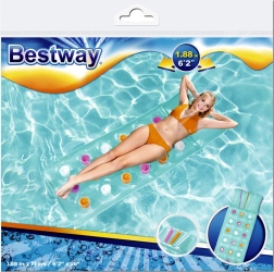 Élvezze a nyarat teljes lendülettel a BESTWAY felfújható matraccal beépített párnával. Kínál kényelmes fekvést, stabil, tartós PVC szerkezetet és akár 90 kg teherbírást. Színes dizájnja feldob minden medencét és strandot, kompakt méreteinek köszönhetően pedig bárhová könnyedén magával viheti.