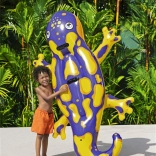 A vidám, színes szalamandra alakú felfújható lovagló úszó ideális medencébe, tóhoz és tengerpartra is. Élénk színei jól láthatóvá teszik, a gyerekek pedig azonnal megszeretik. A két integrált fogantyú megkönnyíti a felszállást, a játék közbeni kapaszkodást és a hordozást.