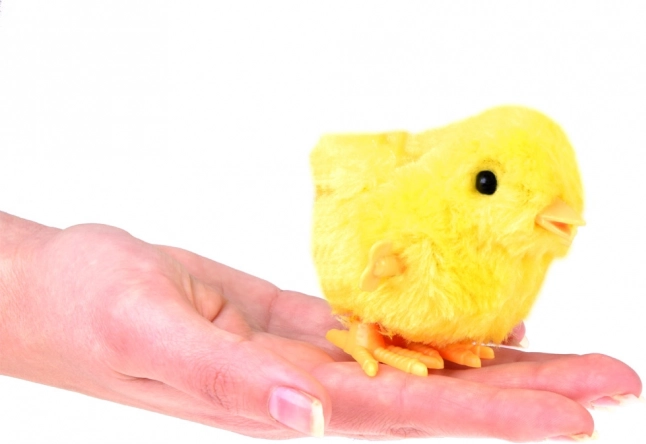 Felcsavarás után a kiscsibe ritmikus lépésekkel előre halad, amely lenyűgözi és szórakoztatja a gyerekeket.