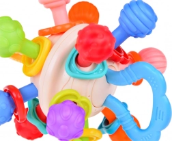 A különböző textúrák és kiemelkedések révén a rágóka stimulálja a gyermek érzékszerveit, serkenti a felfedezést és a tapintási érzékek megismerését.