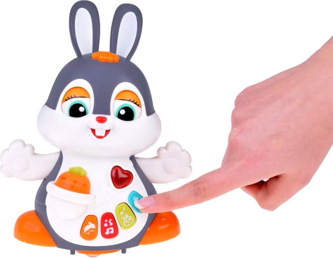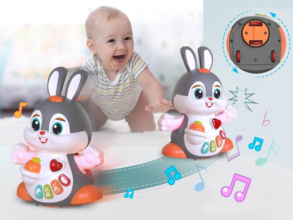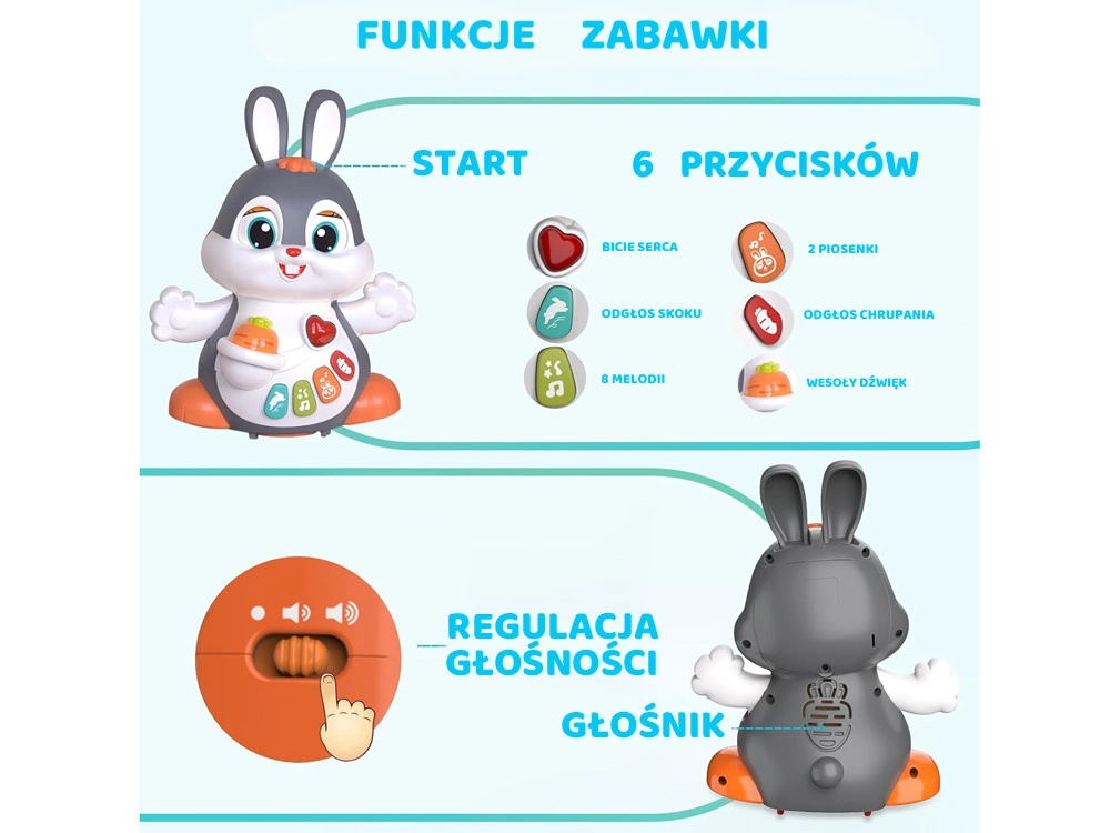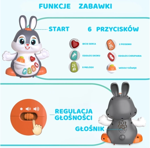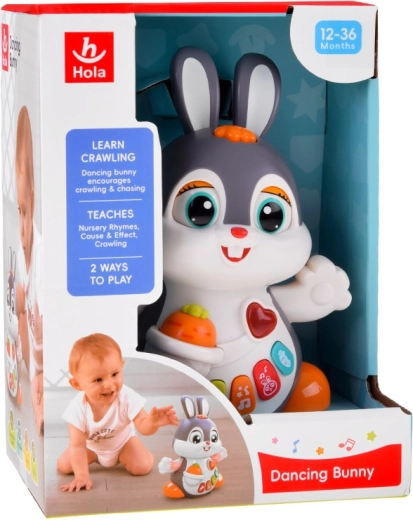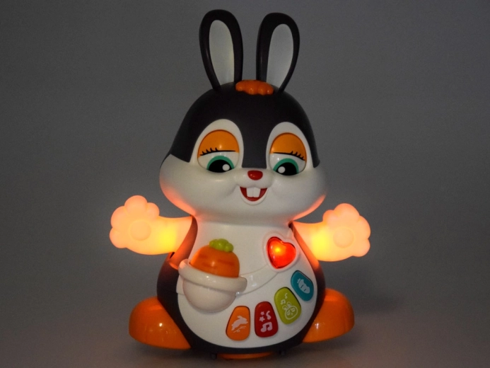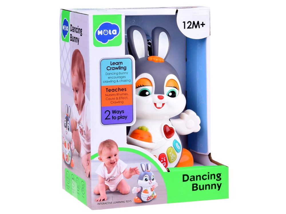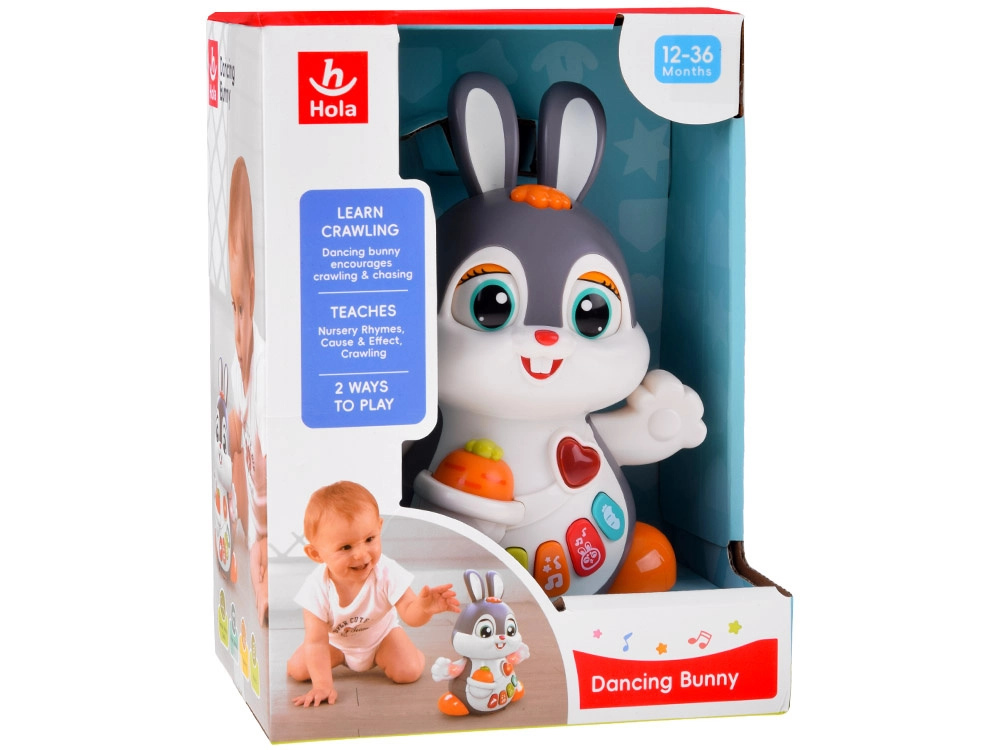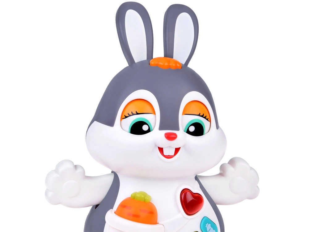 Az interaktív, táncoló nyuszi remek társ az első lépésekhez és a mászáshoz. A játék mozog, pislog, és a zene ritmusára világít. A gyerekeket lekötik a színes gombok különféle funkciókkal: dallamok, szívdobbanás, ugrálás vagy répa rágcsálásának hangja – mindezt fényhatások kísérik.