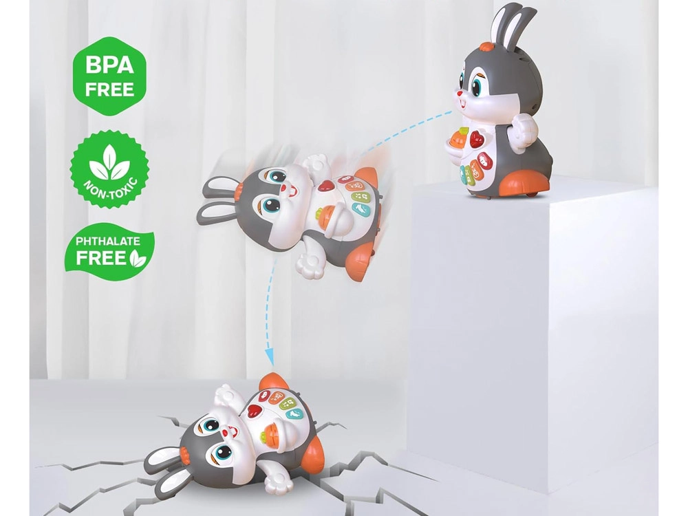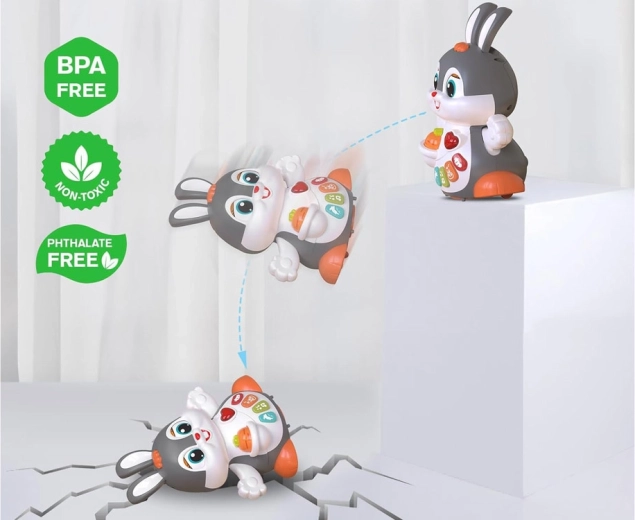 Bekapcsolás után a nyuszi táncol/siklik, pislog a szemeivel és mozgatja a mancsait. Természetes módon ösztönzi a gyerekeket a követésre és az aktív mozgásra.