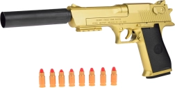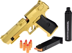 Élje át az akciódús világ izgalmait ezzel a játék arany Desert Eagle-lel, amely puha habszivacs lövedékeket lő ki. Valódi dizájnnal és csábító hangtompítóval van felszerelve a még nagyobb szórakozás érdekében.