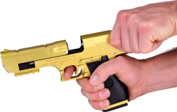 A játék célja, hogy valódi fegyver benyomását keltse, precíz részletekkel és aranyszínű metál felülettel.