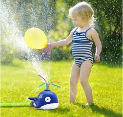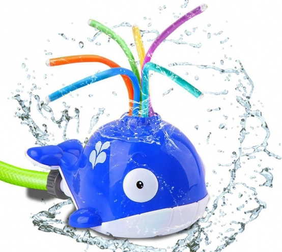 A bálna hátán lévő rugalmas csövecskék minden irányba spriccelik a vizet, vidám, folyamatosan változó vízeffektet hozva létre, amit a gyerekek imádnak.