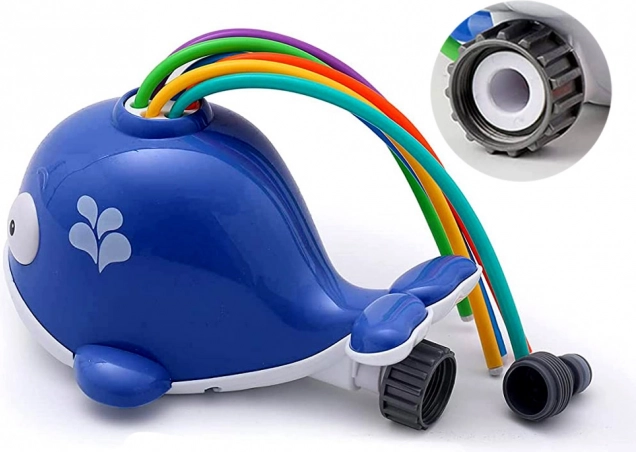 A bájos kék bálna színes, rugalmas csövecskékkel minden irányba szórja a vizet, frissítő vízsugarakat és kis szökőkutat teremtve. A gyerekek aktív kültéri szórakozást és kellemes felfrissülést élvezhetnek a forró napokon. A csatlakoztatás egyszerű – kompatibilis a hagyományos kerti tömlőkkel, a vízsugár erőssége könnyen állítható közvetlenül a csapnál.