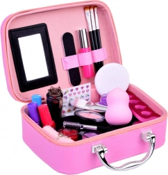 Gazdag tartozékkészlet: A neszesszer különféle kozmetikumoknak ad helyet, mint szemhéjpúderek, szájfények, körömlakkok, ecsetek és applikátorok. Minden termék gyermekbarát és könnyen lemosható.