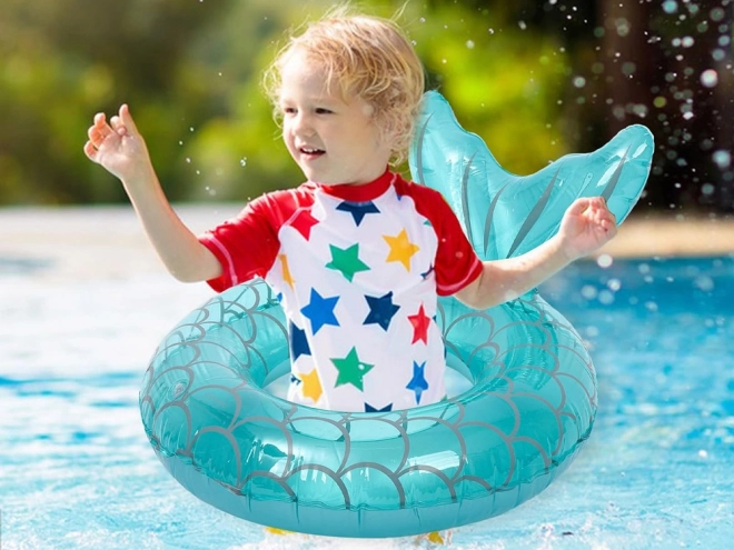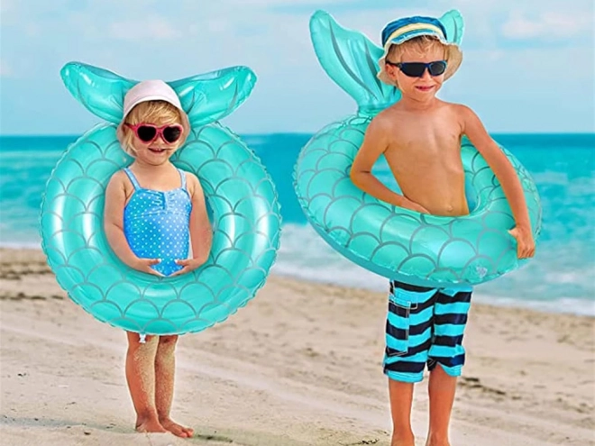 Bájos gyerek úszógumi hableány motívummal, amely biztonságos vízi szórakozást nyújt és támogatja a úszás tanulását. A feltűnő uszony és a vízen nyújtott csúszásmentes stabilitás órákig tartó játékot garantál a medencében, a tengernél vagy a tónál. A pikkelymintás, türkizkék színű, tartós műanyag első pillantásra magára vonja a figyelmet.