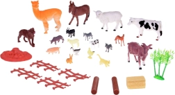 Tehén, ló, kutya, szamár, juh báránnyal, kecskék, alpaka, sertés, bivaly, macska, nyúl, kacsa és tyúk, kiegészítve kerítéssel, szénabálával, fatörzsekkel, bokorral és játéktérrel.