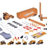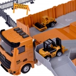Ez az interaktív készlet teljes építkezést hoz el a gyerekeknek egy csomagban. A nyergesvontató nyitható konténerrel kihajtva tágas parkolóvá alakul, és 4 oldalsó stabilizátor biztosítja a biztonságos játékot. Belül mechanikus kilövőrámpát talál az autóknak, valamint gazdag kiegészítőszettet, köztük táblákat, korlátokat és figurákat.