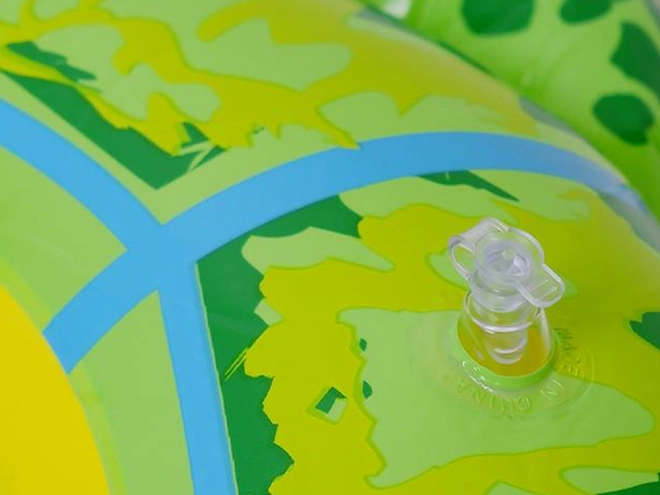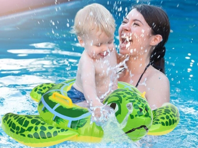 Tartós PVC-ből készült. A teknős uszonyaival és fejével kialakított forma növeli a stabilitást a víz felszínén, és játékos megjelenést ad.