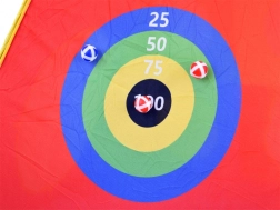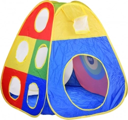 Háromszög sátor: Célponttal a tépőzáras labdák dobásához és speciális nyílásokkal, amelyek megfelelnek a labdák színeinek.