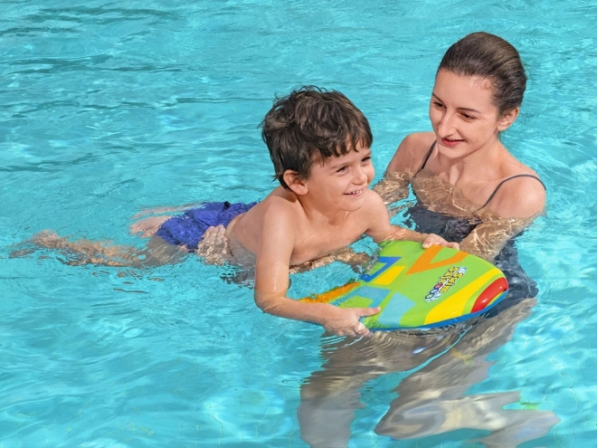 A 42x32x35 cm-es deszka ergonomikus formájú. Tartós habból készült, kiváló felhajtóerővel. Szövetborítással van ellátva, színes grafikával, amely kényelmes fogást biztosít és megakadályozza a kicsúszást a kezekből. 3-6 éves gyerekeknek alkalmas. < /span>