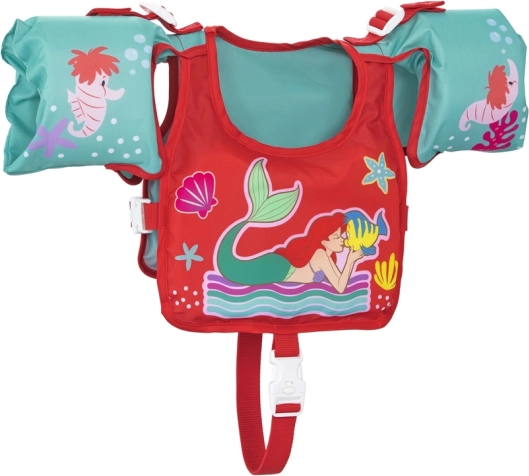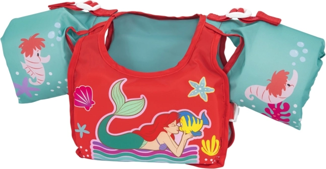 A mellény Kis hableány motívumokkal díszített, amelyek minden gyermeket lenyűgöznek, és szórakoztatóvá teszik az úszást.