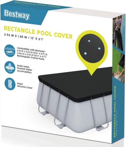 A Bestway medencefedél föld feletti szerkezetű medencékhez lett tervezve, és hatékony védelmet nyújt a rovarok, madarak, levelek és enyhe eső ellen. Gyermekek számára is védelmet nyújt a medencébe való véletlen esés ellen.