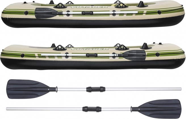 Tartalmaz szilárd evezőket, evezőtartókat, horgászbot tartókat és felfújható párnákat az üléseken a teljes komfort és funkcionalitás érdekében vízen.