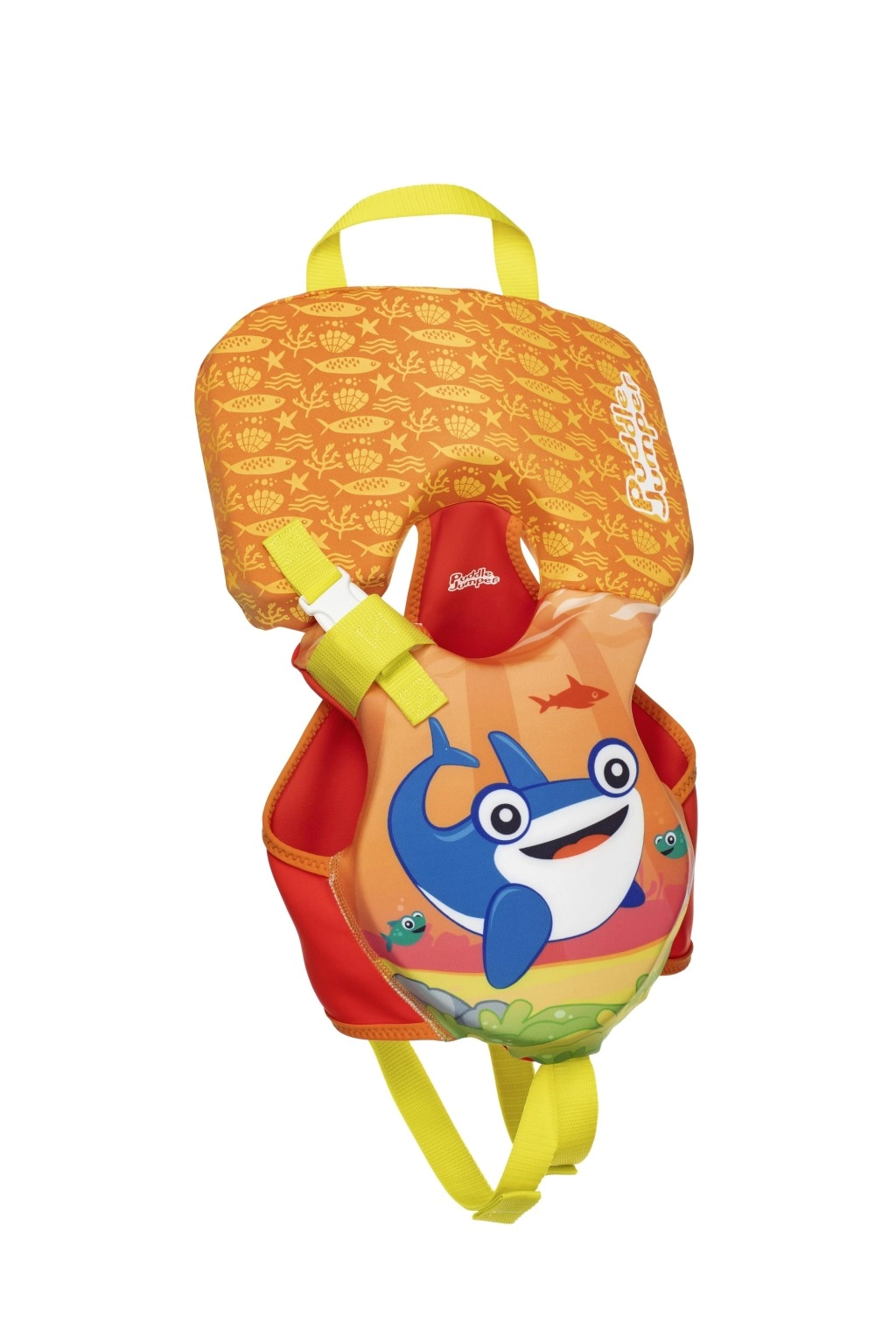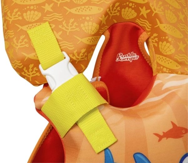 A könnyű és kényelmes Puddle Jumper gyermek úszómellény játékos cápagrafikával ideális a legkisebbeknek 14 kg-ig. Biztosítja a biztonságos felhajtóerőt, a puha, habos párnázást és a nagy fejtámaszt a fej víz felett tartásához. Az állítható pántoknak, a gyorscsatos csatoknak és a mentőfogantyúnak köszönhetően magabiztosságot és kényelmet nyújt a vízparti játék során.