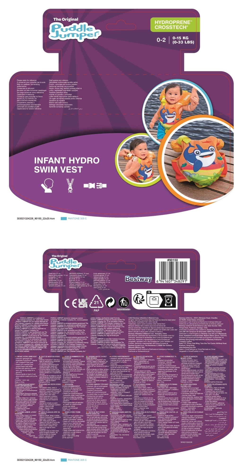 Ez a csecsemőknek szánt Puddle Jumper úszómellény a maximális kényelemre és a szülők nyugalmára készült. A puha, légáteresztő anyag és a habos szerkezet kellemes viseletet biztosít, míg a kontrasztos, élénk színek növelik a gyermek láthatóságát a vízparton.