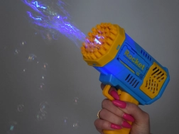 A buborékfújó pisztoly lehetővé teszi, hogy egyszerre akár 40 buborékot eregessen, ami szórakozást jelent a gyerekeknek és a felnőtteknek egyaránt.