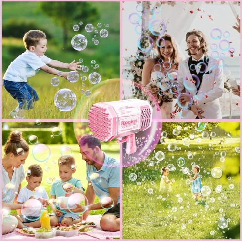 Gyerek buborékpisztoly pasztell rózsaszín színben, ami egyszerre akár 40 színes buborékot is kilő! Nemcsak a gyerekeknek, hanem minden járókelőnek örömet szerez.