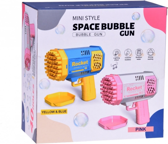 Ez az egyedülálló buborékpisztoly nem igényel beépített folyadéktartályt. Hogyan készítsünk gyönyörű szivárványos buborékokat? Csak öntsön egy kis mennyiségű mellékelt folyadékot a rózsaszín tálkába, és merítse bele a pisztoly elejét. Ezután célozza meg és húzza meg a ravaszt. Az ön előtt színpompás látvány jelenik meg - 40 nyílásból kerek, csillogó formák repülnek ki, amelyek minden nézőt lenyűgöznek!