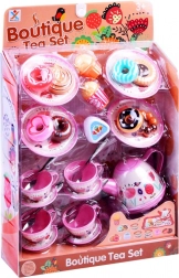 Tálca, kanna, csészék csészealjakkal, kanalak és desszertek válogatása – minden, amire a gyerekeknek szükségük van a babáknak és barátoknak rendezett vendégséghez és a hosszú órákon át tartó kreatív játékhoz.