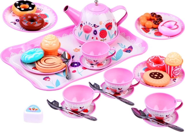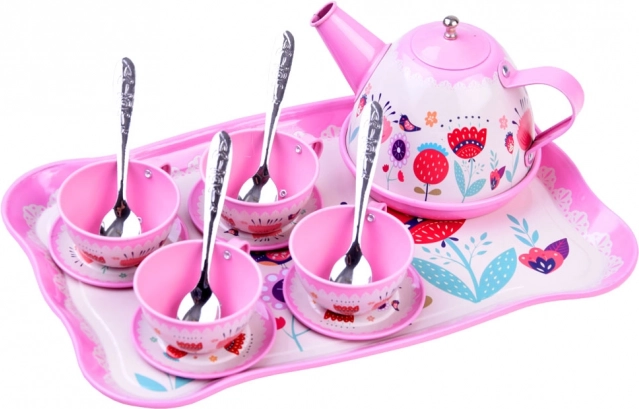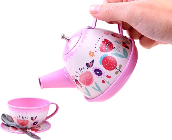 A készlet kifejezetten azoknak a kis vendéglátóknak készült, akik teát szeretnének felszolgálni a babáknak és a plüssöknek. A pasztell színek és a bájos virágminták varázslatos hatást keltenek, miközben a fém felépítés a mindennapos játék mellett is hosszú élettartamot biztosít.