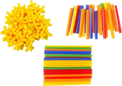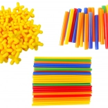 Pálcikák és szívószálak építőkészlet lehetővé teszi különböző építmények és térbeli szerkezetek létrehozását. A csomag műanyag szívószálakat és kötőelemeket tartalmaz, amelyeket úgy terveztek, hogy minden felhasználónak megfeleljen.